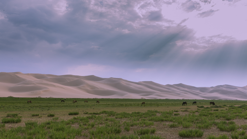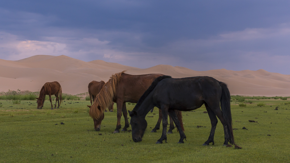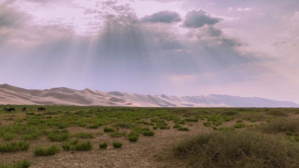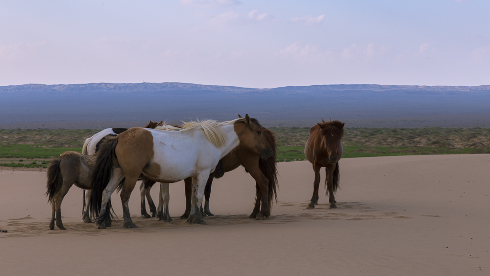 Il deserto del Gobi offre un’ampia tavolozza di paesaggi, dalle dune di sabbia alle montagne, passando per le immense pianure e le steppe desertiche, punteggiata qua e là da oasi e laghi. Nel Gobi, in particolare nelle sue zone semidesertiche, l’allevamento del bestiame costituisce la principale attività economica. I cavalli costituiscono solo una piccola percentuale del totale e sono concentrati sulle più verdeggianti regioni semidesertiche del sud-est. Un numero consistente di animali allevati è costituito da cammelli della Battriana, ancora utilizzati per il trasporto in alcune zone.